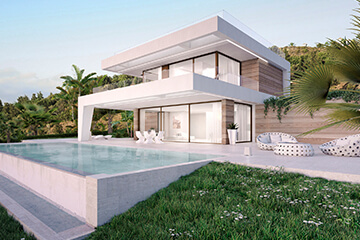 Sie genießen einen spektakulären Panoramablick auf den Golfplatz sowie das Mittelmeer, großzügige Terrassen und Ihren Infinitypool. Ein Keller ist bereits vorhanden; eine Dachterrasse gegen einen Aufpreis buchbar. Das Grundstück mit einer Fläche von über 1.000 Quadratmetern bietet ausreichend Platz und Privatsphäre.
