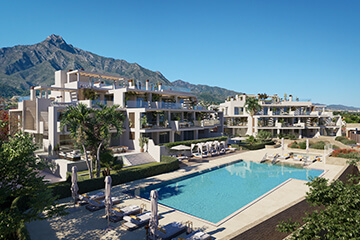 Elegante, lichtdurchflutete und großzügige Luxusapartments und -penthouses entstehen mit dem Neubauporjekt „Earth“ in Marbella in der Nähe der Playa de Nagüeles. Genießen Sie von Ihrer Ferienimmobilie den Blick aufs Meer und auf die Berge. Die Immobilien mit Wohnflächen ab 155 Quadratmetern verfügen unter anderem über drei bis vier Schlafzimmer mit Badezimmer en Suite und Gäste-WC.