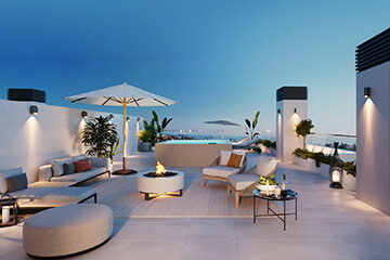 Die Apartments des Neubauprojektes „Insur Scala“ befinden sich in Estepona in der Nähe des unmittelbarer Nähe des Teatro Auditorium Felipe VI. Auch den Parque del Calvario erreichen Sie zu Fuß zügig, ebenso wie Esteponas Innenstadt, die Altstadt und den Strand. Möchten Sie Ausflüge nach Benahavís oder Marbella unternehmen, benötigen Sie dorthin mit dem Auto 25 beziehungsweise 30 Minuten. Die Flughäfen Málaga sowie Gibraltar erreichen Sie in zirka 45 bis 50 Autominuten. Somit bieten sich Ihnen – neben der Selbstnutzung – ideale Voraussetzungen zur Vermietung des Apartments an Gäste.