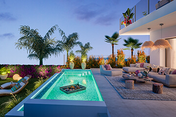 Insgesamt 69 Villen im andalusischen Stil entstehen mit dem Neubauprojekt „Soleia Living el Chaparral“ in Mjas Costa. Die Villen mit Wohnflächen von rund 200 bis 340 Quadratmetern befinden sich im malerischen Bergdorf Mjas Costa, in unmittelbarer Nähe zum Chaparral Golf Club. Die Playa de Chaparral ist ebenfalls fußläufig zu erreichen, und zwar in zirka 10 Minuten.
